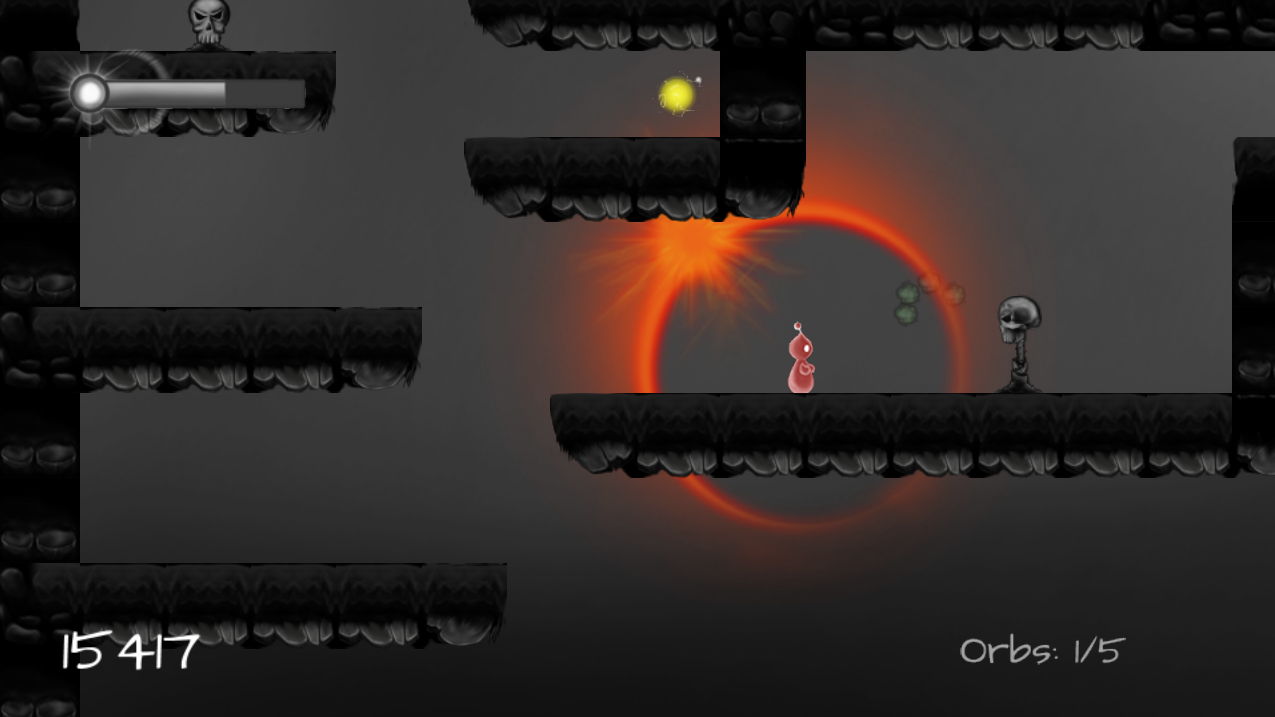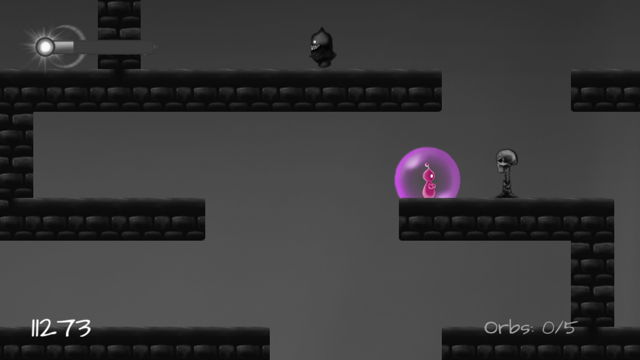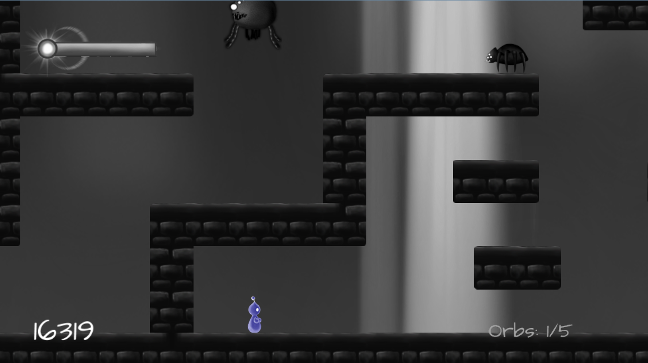 The game consists of five rooms. Each room will consist of a randomly selected platform preset, as well as randomly generated enemies and power-ups that will spawn continuously. Each room will also contain one big light orb. The player must collect all five orbs in order to win the game.
